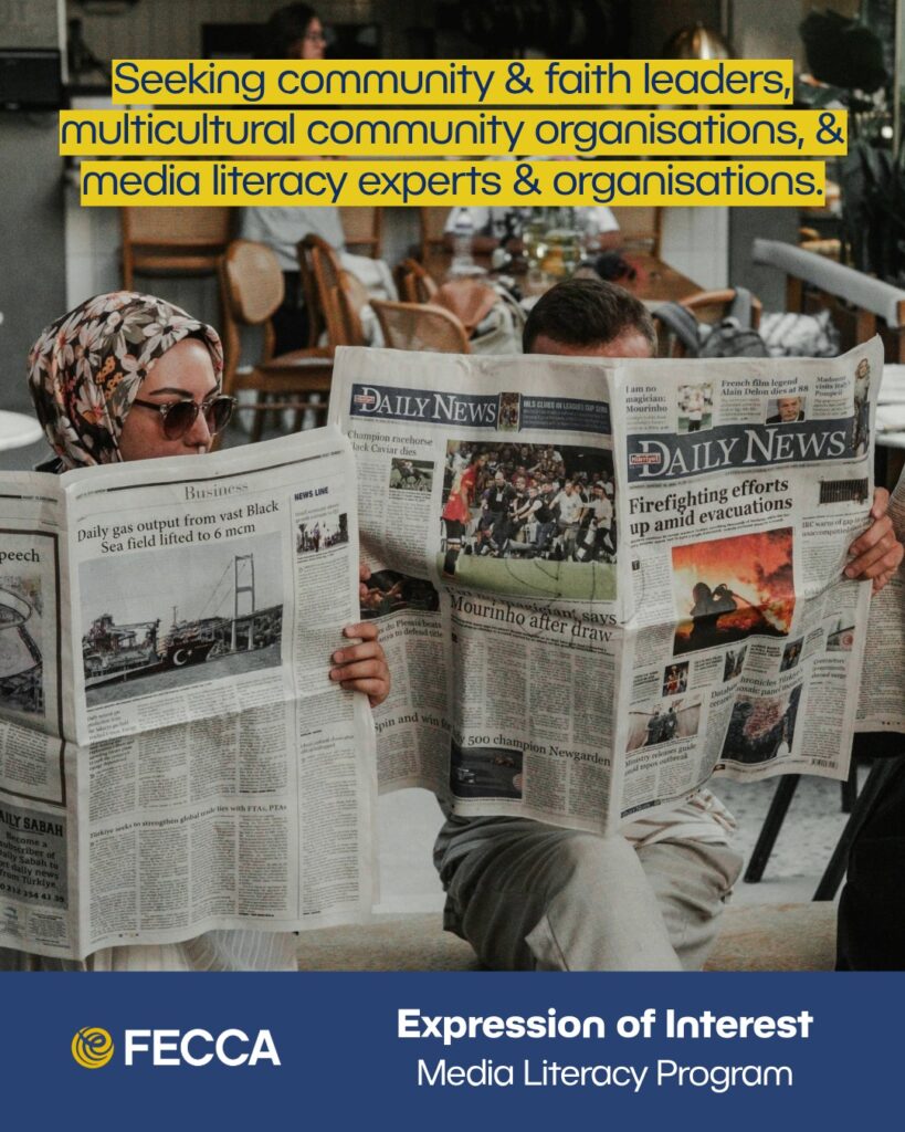 The Federation of Ethnic Communities’ Councils of Australia (FECCA) is inviting community and faith leaders, multicultural organisations, and media literacy experts to participate in its media literacy program, an initiative designed to strengthen media literacy and reduce the risks of misinformation and disinformation within Australia’s multicultural communities.